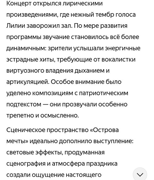 Концерт получил положительные отзывы посетителей парка. В социальных сетях зрители писали, что выступление Лилии стало украшением концертной программы, а её талант и искренность произвели большое впечатление.