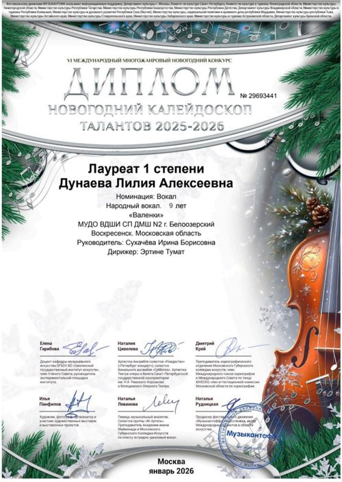 ДМШ N2 покоряет Московские сцены. 17 января, Лилия приняла участие в VI Международном многожанровом конкурсе